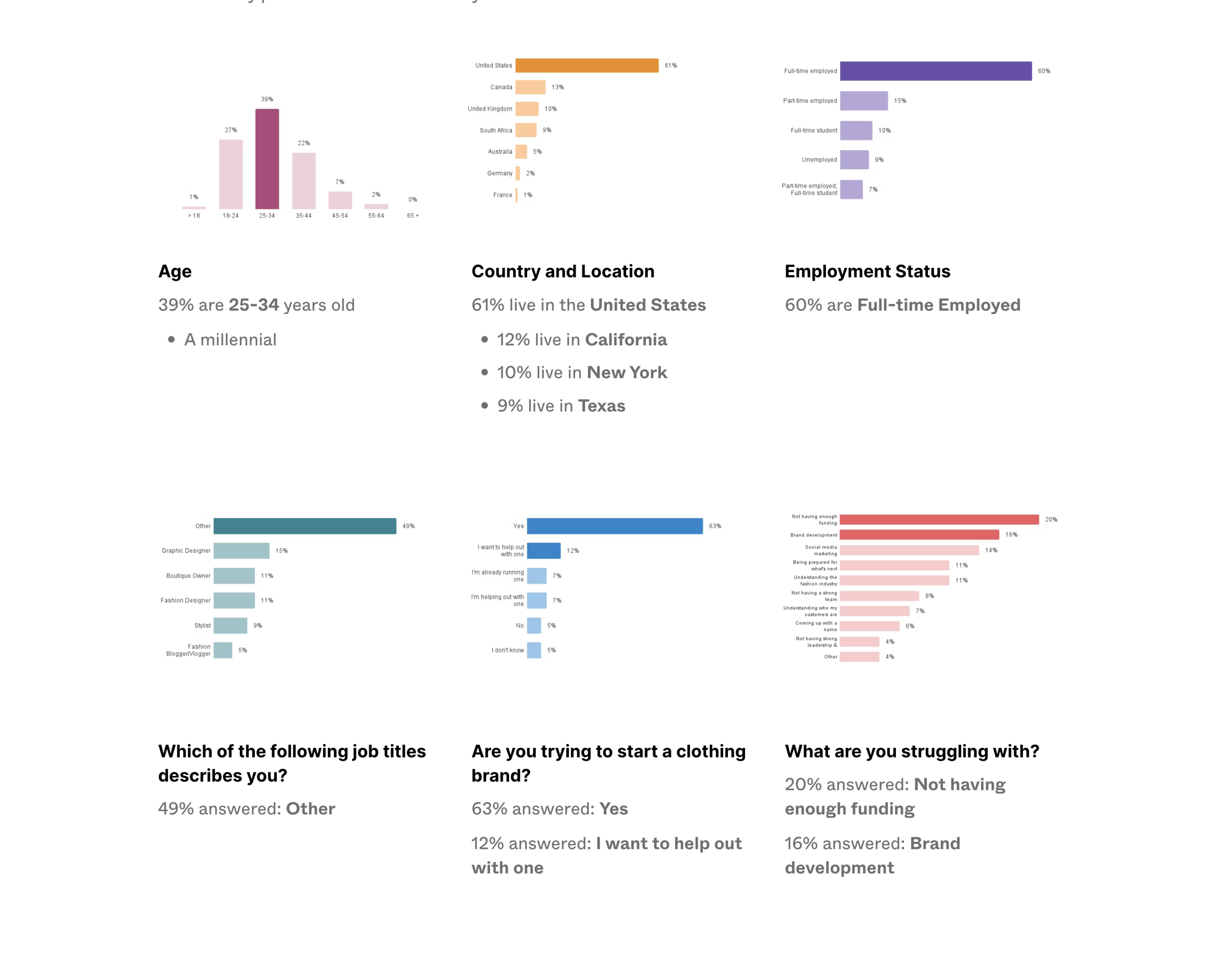 I combined market and user research to shape the foundation of the product. This included collecting over 500 screener survey responses and conducting five interviews with both first-time and experienced fashion founders. I performed competitor analysis of crowdfunding and fashion-specific platforms, then created personas and journey maps that highlighted common struggles such as lack of business knowledge, feelings of overwhelm, and the need for a supportive community. The key insight was that fashion entrepreneurs needed not just funding tools, but also guidance and reassurance to keep them moving forward.